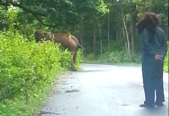 Thomas near a Wild Elephant, a Mozha, on 2-6-13. The